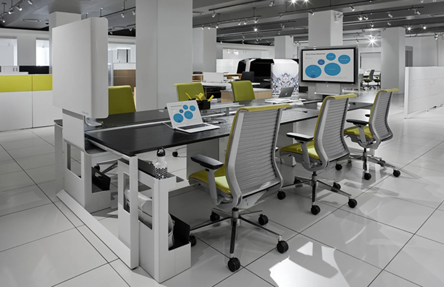 A marriage of two of Steelcase's flagship products, FrameOne with media:scape Technology takes the digital democratization of media:scape to the FrameOne bench for collaborative project teams.