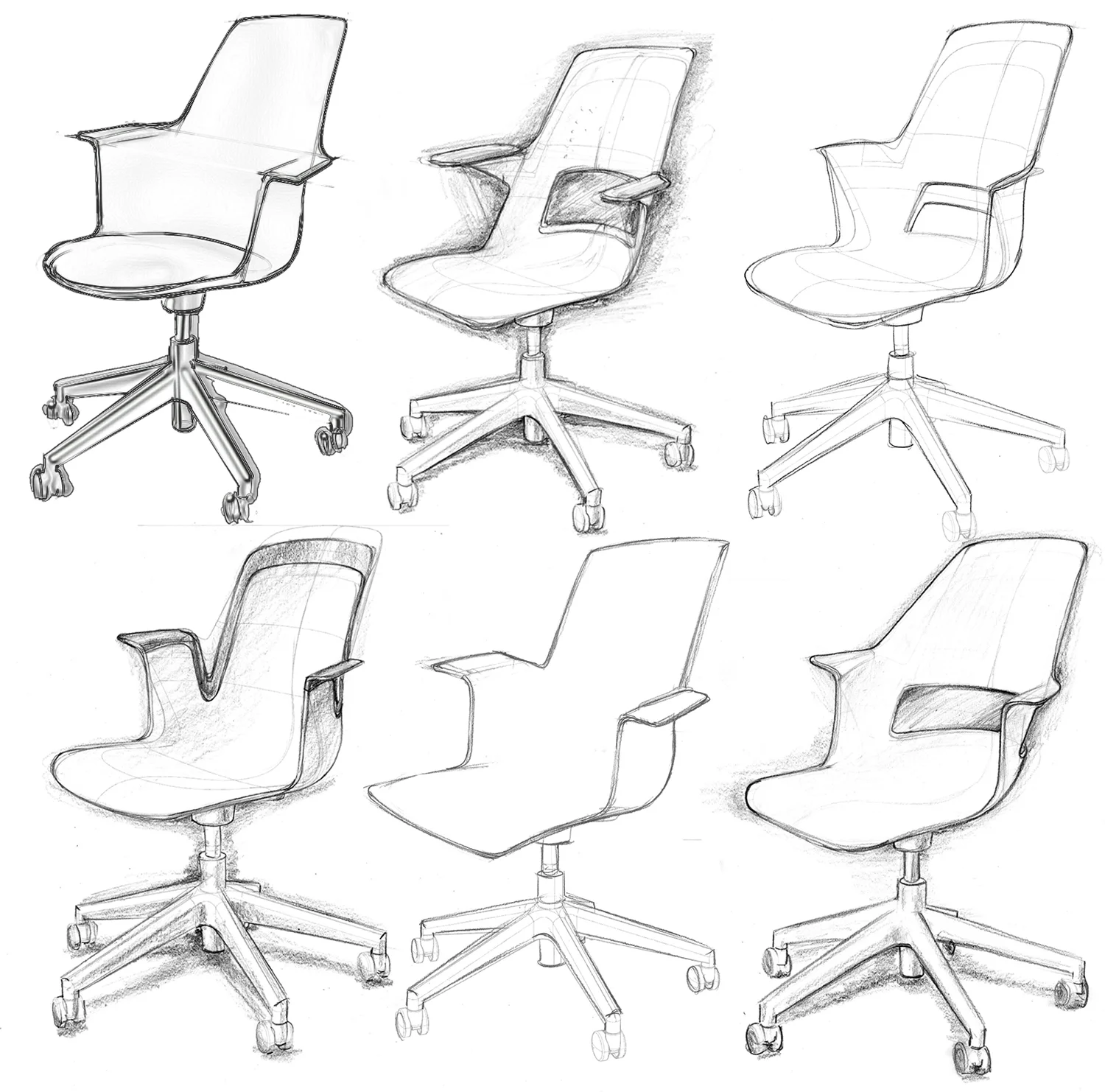 Designed for mobile workers who are constantly coming and going, this chair is the Shortcut to comfort. Truncated elbow rests provide minimal surface area, but adequate support for a variety of postures and movement while seated without getting in the way. The cutout in the seat shell allows the seatback to flex, yielding a surprising amount of comfort from a simple shell. An optional upholstered seat pad provides additional padding, materiality, and color to allow users and choosers to show their personality.