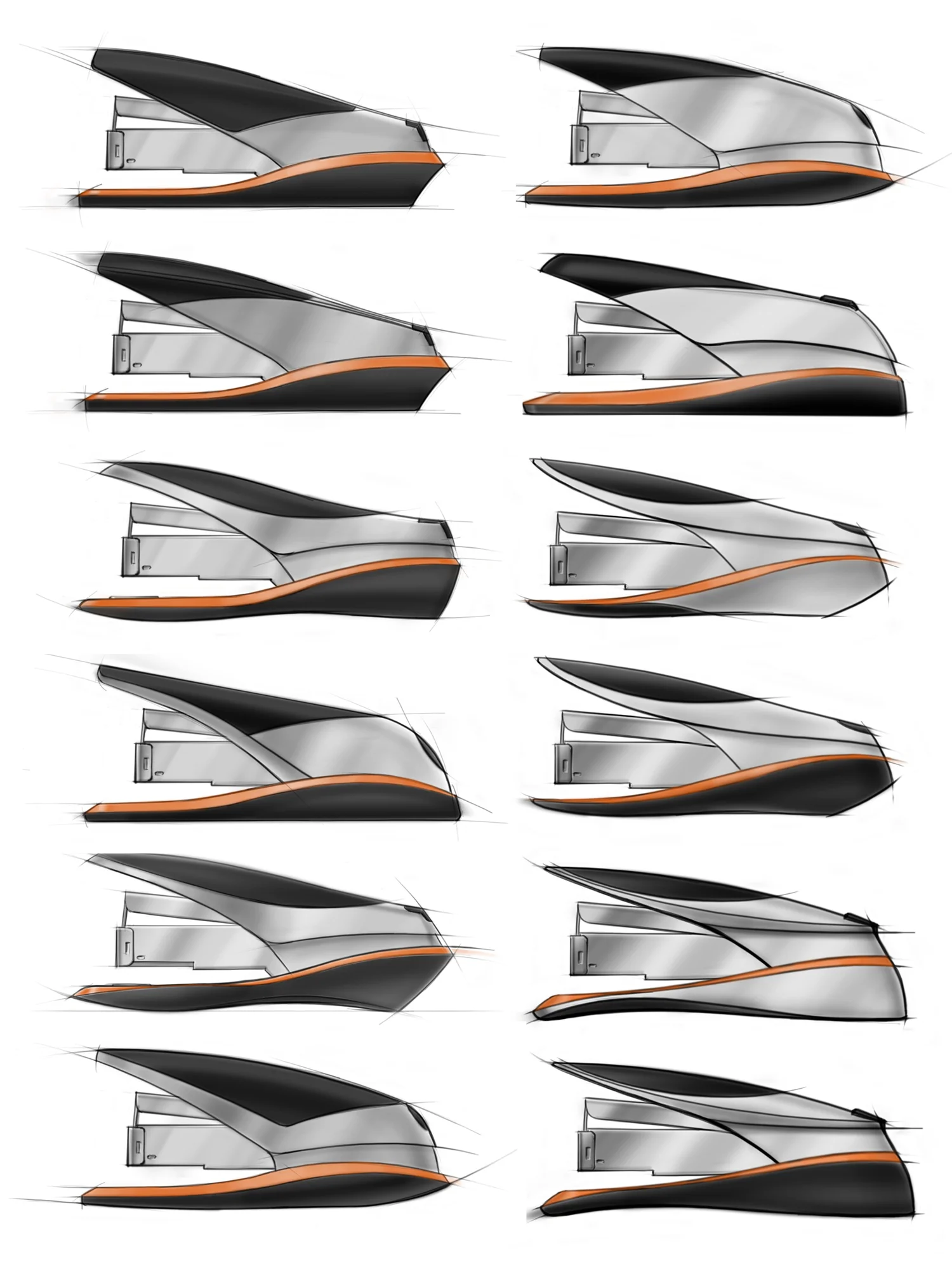 Initially intended as a line extension to Swingline's Optima line, I worked on the initial concept sketch and computer modeling work. This concept work was later adapted and the SmartTouch line of staplers was born.